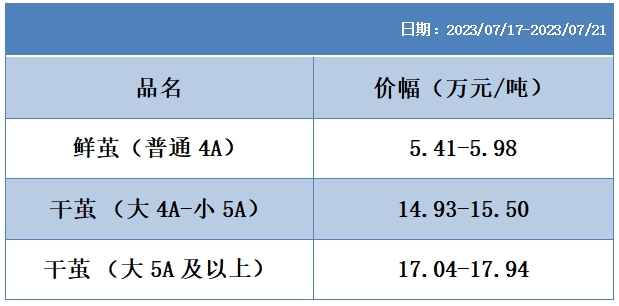 根據(jù)本周蠶繭報(bào)價(jià)按照指數(shù)方案形成的基準(zhǔn)品價(jià)格區(qū)間