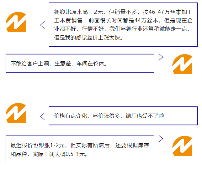 杭嘉湖片區(qū)和蘇北等織造主產(chǎn)區(qū)的企業(yè)中上調(diào)價格范圍有增加,但整體銷量不多。