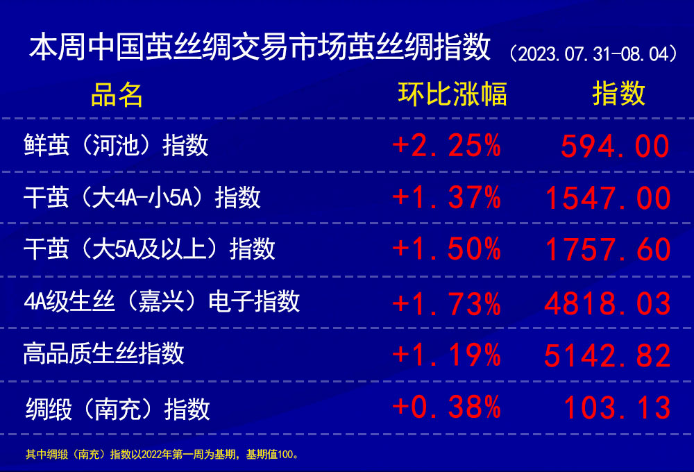 注:近期絲價變化較大,本周上報價格中,有部分為前期成交、本周開票所報的價格。