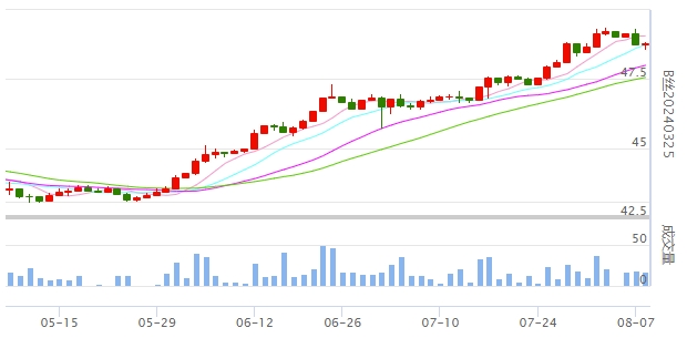 今日(2023年08月08日,周二)中國繭絲綢交易市場生絲指數(shù)微漲0.05%收于4816.98點。B絲(商檢4A級生絲):230825合約報平收于48.03萬元;230925合約上漲0.15萬元報收于48.03萬元;240325合約上漲0.06萬元報收于48.81萬元。