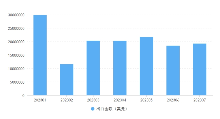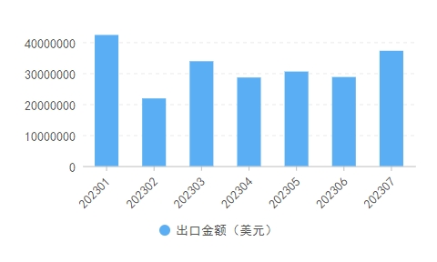 這是海關(guān)編碼為5007的絲或絹絲機(jī)織物商品出口金額統(tǒng)計(jì)。