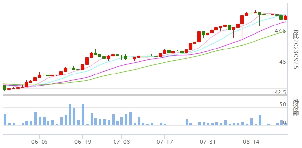 今日(2023年08月24日,周四)中國(guó)繭絲綢交易市場(chǎng)生絲指數(shù)上漲0.27%收于4886.37點(diǎn)。B絲(商檢4A級(jí)生絲):230925合約上漲0.27萬(wàn)元報(bào)收于48.99萬(wàn)元;240325合約上漲0.39萬(wàn)元報(bào)收于49.05萬(wàn)元;240925合約上漲0.09萬(wàn)元報(bào)收于48.30萬(wàn)元。