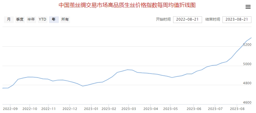 南充綢緞指數(shù)上,部分品種的價格略上調(diào)帶動價格指數(shù)環(huán)比略上漲。整體上,價格以持穩(wěn)能接單為主,本周來看,供應鏈各環(huán)節(jié)持續(xù)較強挺價意愿,后續(xù)關(guān)注成本端8月底9月初廣西等地秋繭上市情況和需求端的訂單到達情況