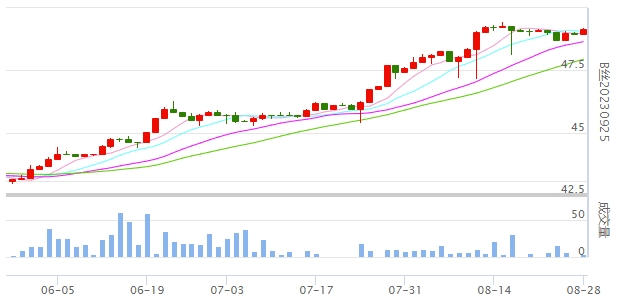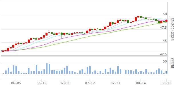 今日(2023年08月28日,周一)中國繭絲綢交易市場生絲指數(shù)上漲0.36%收于4896.30點(diǎn)。B絲(商檢4A級生絲):230925合約上漲0.18萬元報(bào)收于49.14萬元;240325合約上漲0.27萬元報(bào)收于49.20萬元;240925合約上漲0.12萬元報(bào)收于48.39萬元。